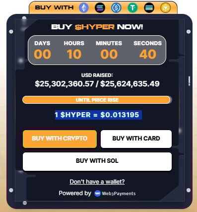 Тик-так, время идет — приобретите $HYPER до взлета. Потому что ничто так не говорит о «взлете», как токен, который на 100% гарантированно рухнет. ⏱️