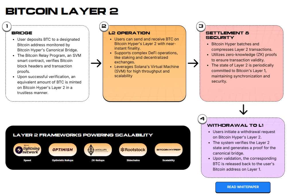 Bitcoin Hyper — это инновация Layer 2 (L2), направленная на ускорение Layer 1 (L1) Bitcoin скоростью, масштабируемостью и расширением DeFi. Потому что ничто так не говорит о «ускорении», как протокол, который наконец-то решил перестать относиться к Bitcoin как к реликвии. 🚀